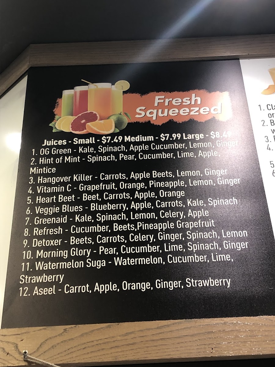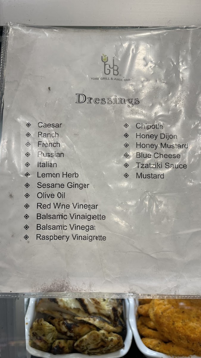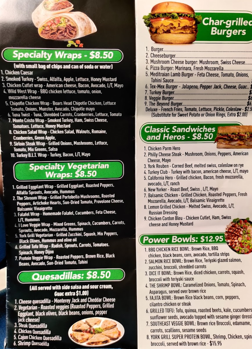 York Grill and Juice Bar Menu